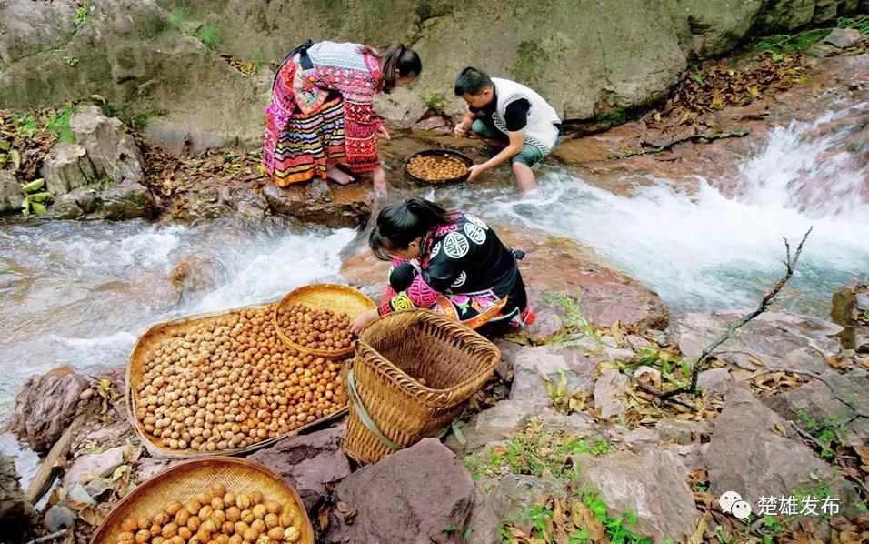 村民們忙著采收、漂洗核桃