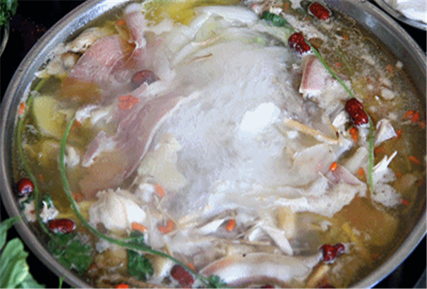昭通天麻火腿雞火鍋,聽起來就是滿滿養生的感覺——昭通小草壩天麻、宣威火腿、文山三七、土雞,再配以西洋參、大棗、枸杞等多種尊貴藥材,營養價值爆表有木有!