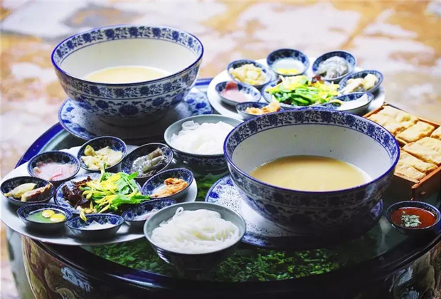 “食品中的尤物”,昆明文青鼻祖,汪曾祺先生曾這樣評價云南的過橋米線。依據(jù)傳統(tǒng)熬制8小時以上的湯底,滾熱中香氣撲鼻,把鵪鶉蛋、火腿片、里脊肉、烏魚片、香酥、草芽和豌豆尖等等豐富的精選食材按次序燙熟,簡直像是完成一種喚醒食欲的儀式——這是最具盛名的云南菜之一。吃之前喝一口湯,“呲溜”一口米線,味覺層次豐富,鮮美卻不燥舌,怎么會不討人口腹歡喜呢?