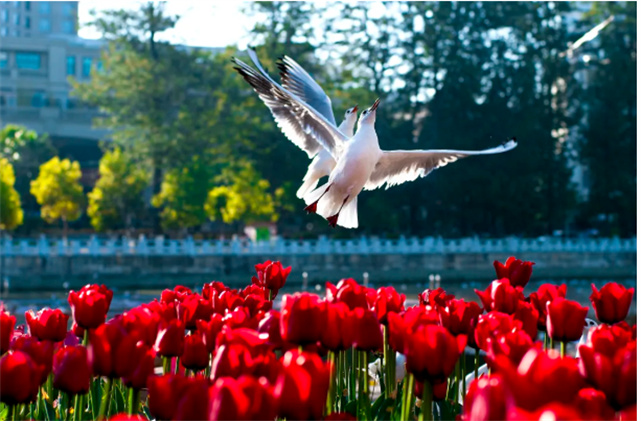 隨著公園西區長聯文化大道上銀杏漸黃,臨水區域就會飛來了首批安家的紅嘴鷗。