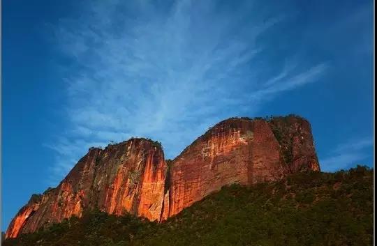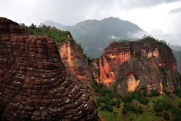 地勢險峻如刀削斧劈,有的山崖角度接近90度 。
