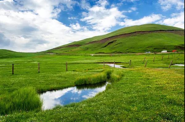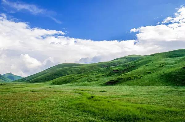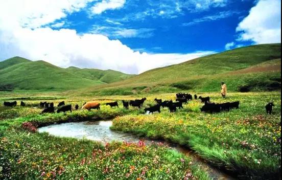藍天白云一望無際的草甸,風吹草地現牛羊。