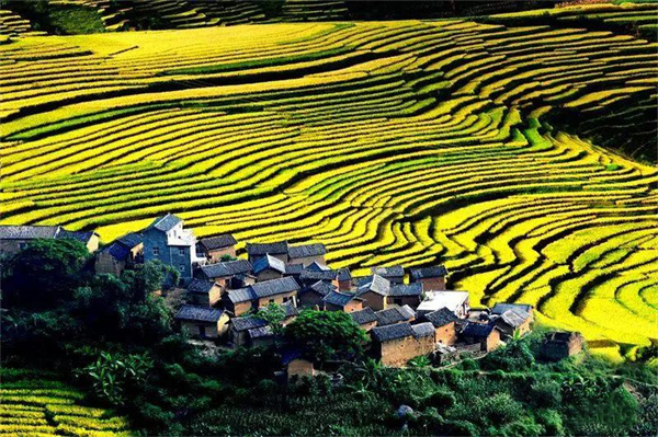 櫻花盛開、茶園青翠、百畝梯田秀美壯觀……