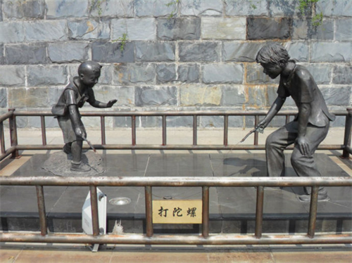 抽陀螺游戲是一項(xiàng)盛行于上世紀(jì)40年代的男孩游戲,當(dāng)時老北京的孩子把抽陀螺叫做“抽漢奸”,因那時日本人侵占了北京城,不少漢奸助紂為虐,他們跟日本鬼子一樣招人恨,老百姓就借抽陀螺時出氣兒,一邊抽一邊說:“抽漢奸,打漢奸,打敗日本,打漢奸。”“抽漢奸,打漢奸,棒子面漲一千。”以解心頭之憤恨。