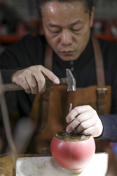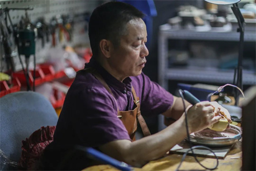 近年來,付忠華在全國、省內斬獲多項大獎,今年,付忠華被云南省人社廳評定為高級工藝美術師,即便如此,他還是不斷和自己較勁。為了讓更多人了解鋦瓷技藝,他搗鼓短視頻賬號傳播鋦瓷文化;為了讓鋦瓷技藝更廣泛地傳承發(fā)展,他曾連續(xù)多年免費傾力教學……如今,付忠華已招收學生數(shù)十人,正式收徒20余個,鋦瓷這門古老手藝,在付忠華的探索實踐中,達到“戀舊”與“煥新”的雙重平衡,并以更美的姿態(tài),重回尋常百姓家。
