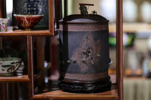 《“蟻”往無前》:看,那破損的茶葉罐身上,有一串栩栩如生的銅鋦小螞蟻正在奮力向上,洞口處,另一只小螞蟻正試圖鉆進洞中一探究竟,罐蓋上,一只小螞蟻威武地舉著一根樹枝挺身站立。吾志所向,一往無前,螻蟻尚且如此,何況人乎。作品在中國工藝美術大師作品暨手工藝精品博覽會上獲“百花杯”中國工藝美術精品獎優(yōu)秀獎,在云南省工藝美術第十二屆“工美杯”榮獲金獎。