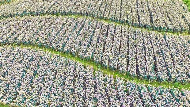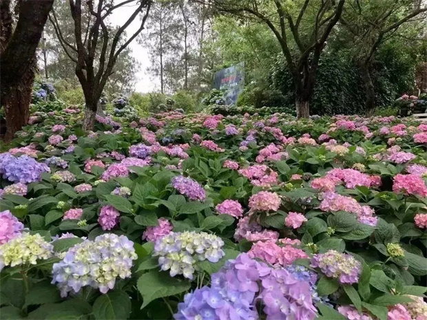綠葉間探出頭來的小小花苞,不知最終開出來的是藍色還是粉色?帶著這樣的疑問,游人一腳便踏入了花海。