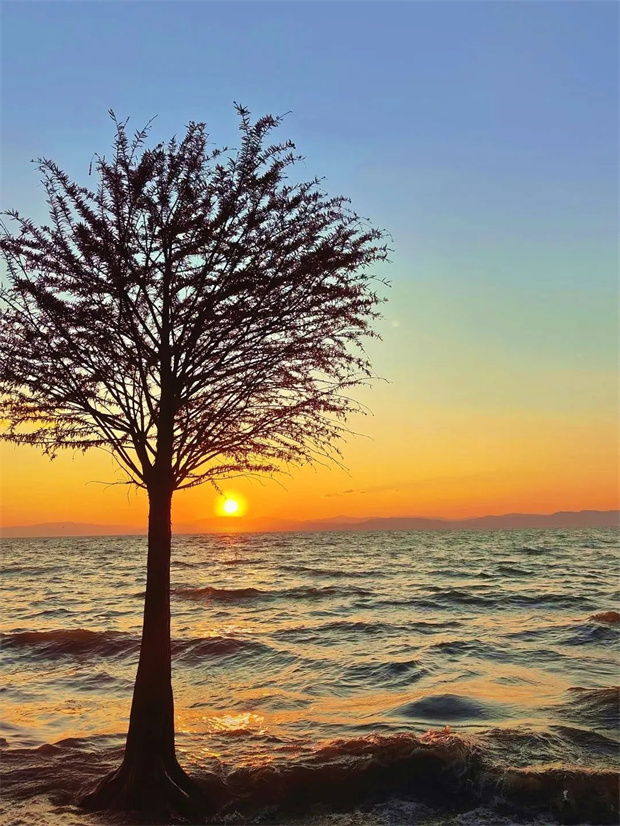 「滇池日落,手捧夕陽的浪漫」傍晚時分,一定要到滇池邊守一場日落。直奔觀景臺或沙灘,看落日沉入滇池,湖面波