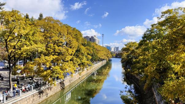 必打卡機位920醫院門口拱橋:老拱橋與滇樸相映,站南側棧橋西南端,拍拱橋與倒影形成的完整“圓形”;橋上俯拍,沿河鎏金長廊、行人與白鷺盡收眼底。 西昌路-西園北路段:滇樸密集形成“黃金隧道”,低機位仰拍,人物穿行其間如入童話;用欄桿做前景虛化,突出主體更有層次。秋園公園沿岸:水域開闊,可拍滇樸倒影,11月后偶遇紅嘴鷗,抓拍人與鷗、金黃葉片同框的生態美景。大觀公園南門西行段:滇樸映山水,以烤紅薯小攤為前景,拍煙火氣與秋景交織的治愈畫面。穿搭與技巧?穿搭選白色、米白等淺色系,或新中式衣裙、法式襯衫,適配不同氛圍。道具帶草帽、絲巾、團扇等,增添靈動感。停車:920醫院或是白馬廟路邊停車位。??地鐵:地鐵3號線“市體育館”站,或者是地鐵5號線“彌勒寺”站,到達大觀河“拱橋”位置處,差不多都在2公里左右。??公交:觀光1號線、安寧K8路、22路、52路和58路等,均在“920醫院”站上下乘客。周邊推薦:從“拱橋”順著大觀河往上游走,大約800米就到美食超級多的“篆新農貿市場”。往下游前行,不到1.5公里就到大觀公園大門。