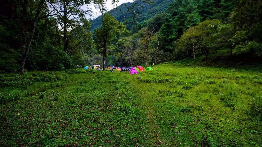 車開到大綠溪村口停好車,背上行囊,沿著蜿蜒的山路走著,小路的盡頭是一片開闊的草坪,綠意盎然,氣息清純,甚是愜意;偌大的草場,儼然一個(gè)天然大氧吧,極適合露營。