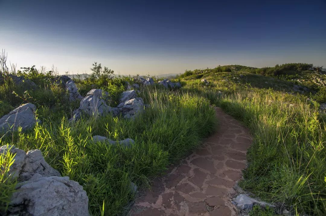 陽光傾瀉而下,青草依依,小路蜿蜒,結(jié)三兩好友踏青徒步,感受大自然的美。