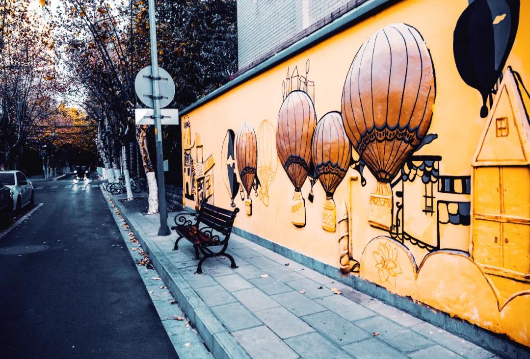 布滿了彩繪的黃色墻面,是最佳的拍照背景。穿著法式風格的連衣裙和文藝森女系衣服,就能拍一組小清新的照片。