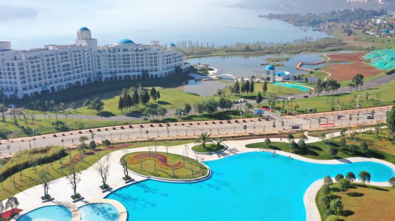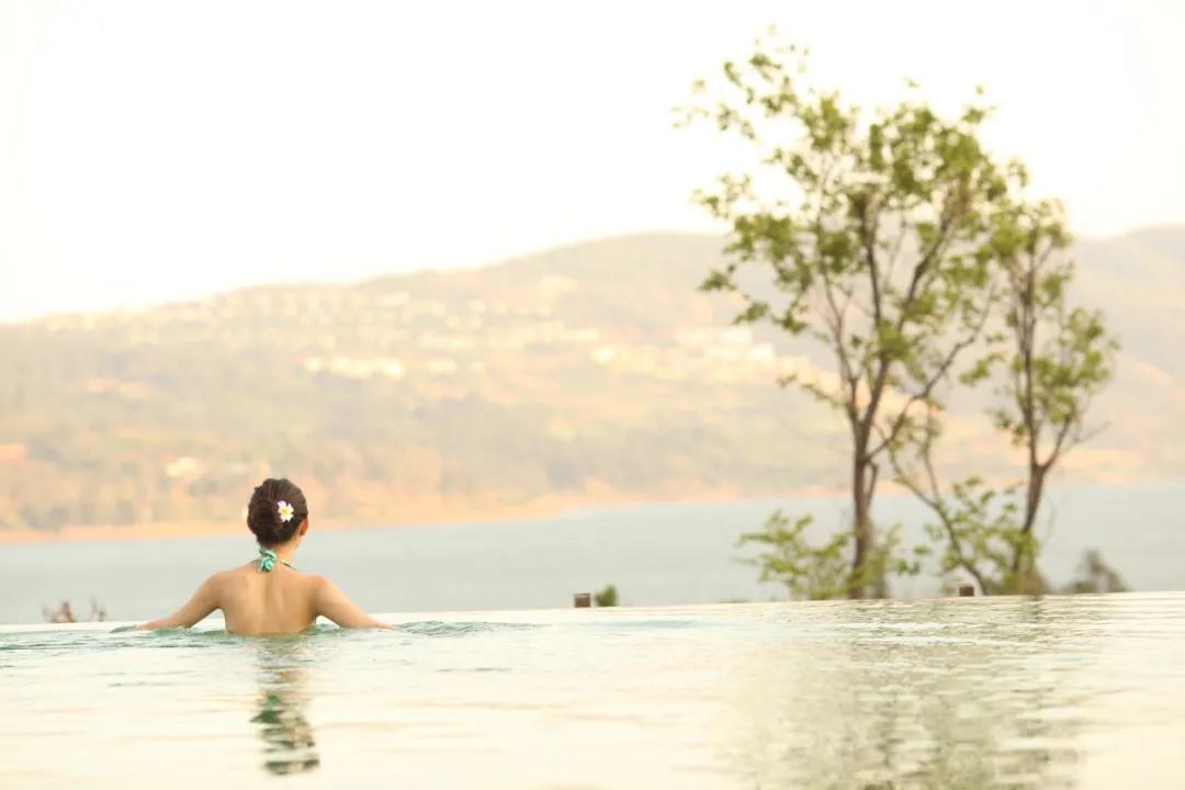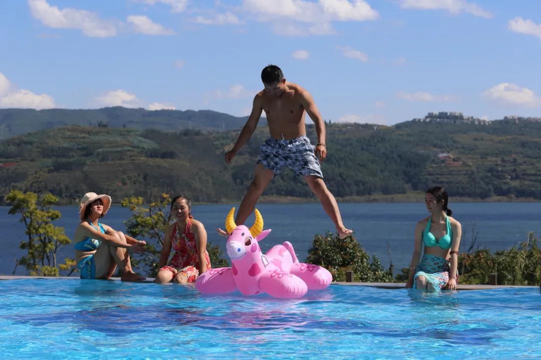 網(wǎng)紅無(wú)邊際泳池水面與陽(yáng)宗海齊平