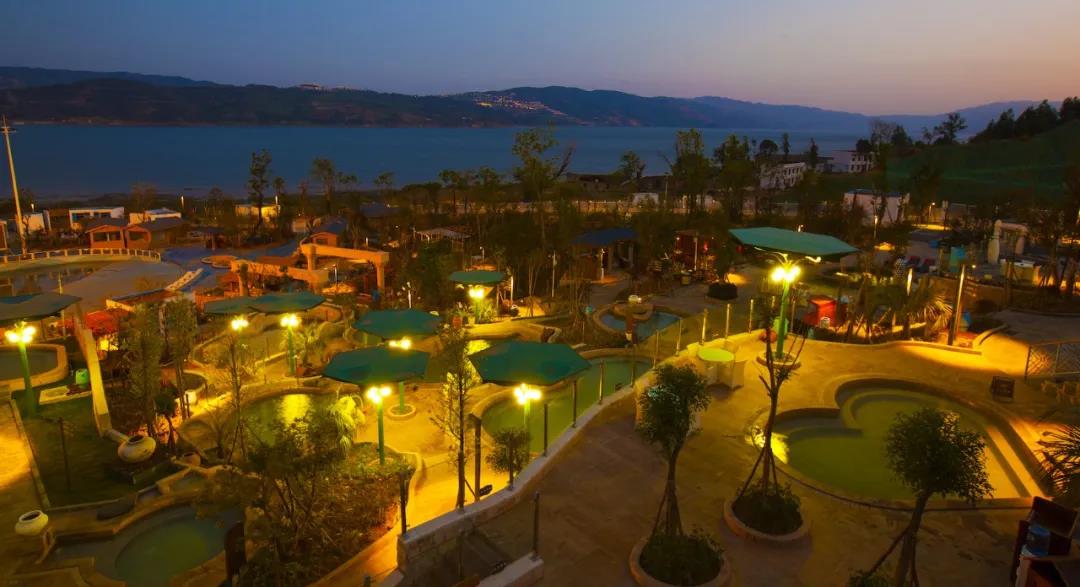 園區(qū)內(nèi)依山而建的60余個(gè)泡湯池錯(cuò)落有致