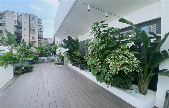 一樓整個公共開放區域每個角落都可以出片,桌上點綴的鮮花與周圍綠植相映成趣。