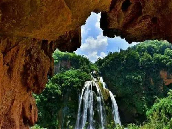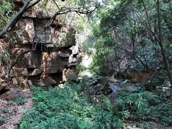 宜良縣城南的月亮谷,自然風(fēng)光絕美。春日的峽谷內(nèi)峰巒疊翠,懸崖崛地而起,瀑布與鳥鳴唱和,清泉同蟲聲奏鳴,粗莽的藤條掛在高大的樹木上,樹影遮天蔽日,仿若原始野林。