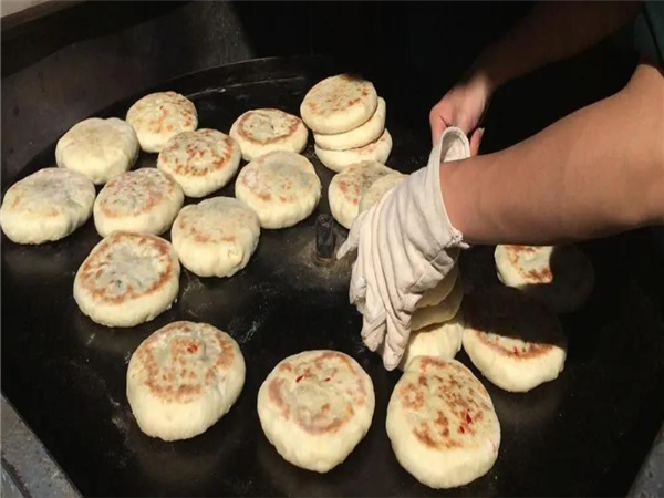 官渡粑粑是一種極為普通的面食,以芝麻、花生、核桃等磨細果仁與白糖等混合為餡烘制而成一圓形粑粑,松軟香甜,綿柔勁道,十分可口。