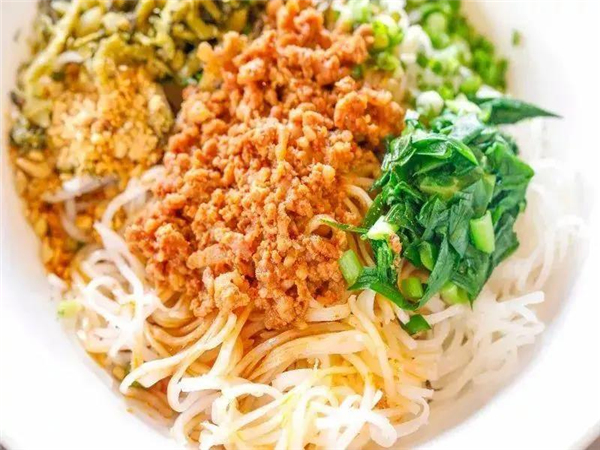 米線是云南的特色小吃。米線是經過用大米發酵、磨漿、澄濾、蒸粉、壓制、漂洗等工序制作而成的。云南人愛吃米線,一日三餐幾乎都有米線。