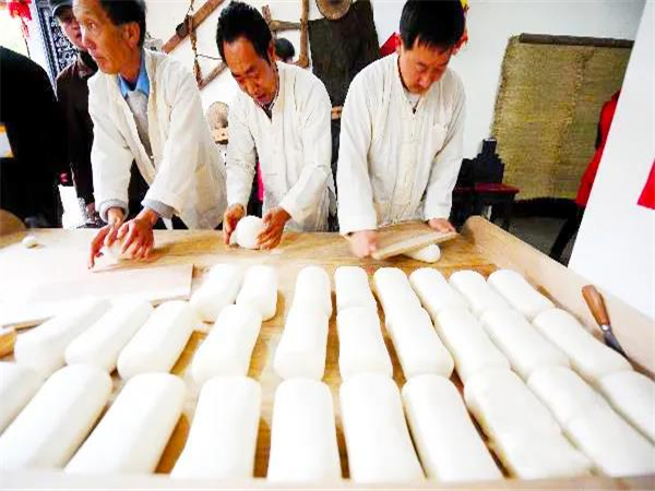 官渡餌塊是一種用大米制作的風味小吃,做法十分講究,可以說完全采用人工舂制、人工揉捏等古老的舂制方法制作。