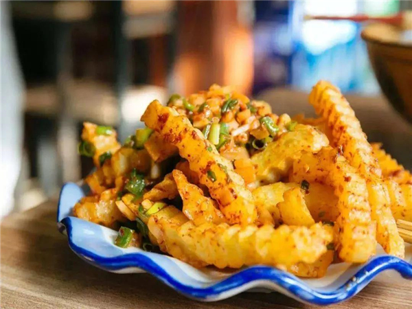 官渡古鎮的麻辣洋芋夠麻、夠辣,佐料的搭配仿佛能夠牽動著味蕾,每一家的洋芋都出奇的好吃。