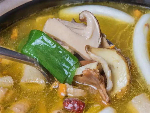 作為云南著名的十大火鍋之一的酸湯豬腳,口感脆嫩、解酒去腥的酸菜與健脾益氣、肥而不膩的豬腳搭配出一口濃香,讓你食欲大開,大快朵頤。一碗米飯,佐以酸爽的湯底,足以撩撥每一副轆轆饑腸。