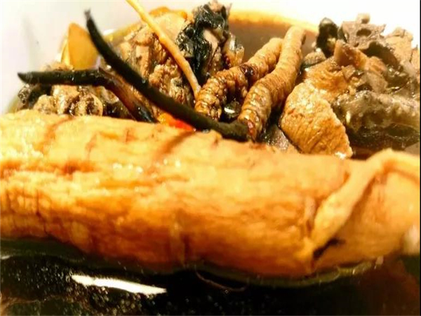 冬蟲夏草,一種形似幼蠶的古老中醫(yī)藥材。中醫(yī)認(rèn)為它有補(bǔ)腎益肺,止血化痰的功效。冬蟲夏草烏雞湯,是一個流行千年的藥膳配方,起源于青海地區(qū),是古代藏醫(yī)用于大補(bǔ)元氣的常用食譜。