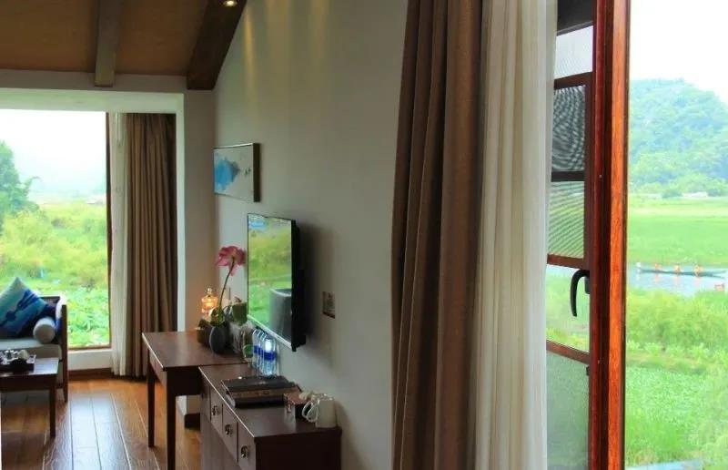 民宿身處普者黑景區中,在景點情人橋旁。民宿一樓的長廊在一個偌大的荷花池邊,每個房間面對廣闊的池塘,每當荷花盛開的時節,滿池的荷花搖搖曳曳,讓人心醉。池塘連著大片的山水風光,可以說每間房都是風景房。