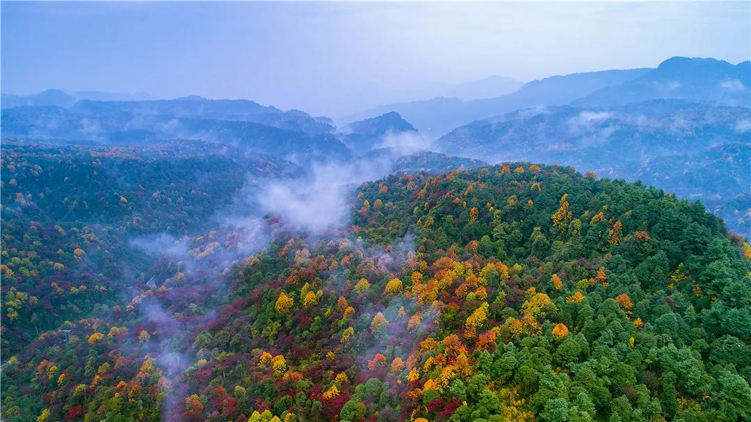 每至秋季,秋風就如被打翻的調色盤,將小草壩點綴得美輪美奐。滿山遍野的樹木,仿佛一夜間就變得或紅、或黃、或紫,多種顏色互相交融、點染映襯,讓小草壩綿延繁茂的原始叢林變成了一個個五彩繽紛、搖曳多姿的色彩世界,宛若一幅幅景色各異,美輪美奐的天然油畫。