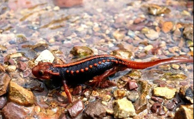 紅瘰(luǒ)疣螈,為蠑螈科兩棲動(dòng)物, 在云南西部分布較廣。雄螈全長(zhǎng)136毫米~150毫米,雌螈147毫米~170毫米。紅瘰疣螈頭部平扁,兩側(cè)脊棱顯著隆起,無(wú)唇褶,好似傳說(shuō)中的麒麟的角,所以民間又有“金麒麟”之說(shuō)。它的身體兩側(cè)長(zhǎng)了瘰粒,一般一側(cè)為14~16枚,像極了排列整齊的“乳釘紋”,頗為有趣。身上色彩也頗為鮮艷,背部和體側(cè)為棕黑色,而頭部、背脊棱、體側(cè)瘰粒、尾部、四肢、肛部周圍均為棕紅色或棕黃色,喜食蚯蚓、蜈蚣、步行蟲(chóng)、蝸牛等。如果實(shí)在喜歡紅瘰疣螈,能買一只或捉一只當(dāng)寵物養(yǎng)嗎?當(dāng)然不可以,紅瘰疣螈是國(guó)家二級(jí)重點(diǎn)保護(hù)野生動(dòng)物,無(wú)論是捕捉了用于自養(yǎng)還是用于買賣,都屬違法。
