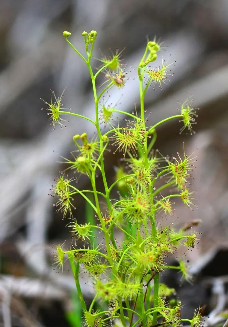 但茅膏菜也有其溫情的一面,它并不會(huì)對(duì)所有昆蟲(chóng)“趕盡殺絕”。在它花期時(shí),植株會(huì)抽出長(zhǎng)長(zhǎng)的花序軸,以免誤傷了授粉的昆蟲(chóng)。為了保護(hù)給它授粉的昆蟲(chóng),才將花朵開(kāi)在離葉子較遠(yuǎn)的花莖上吧。但茅膏菜的花期很短,在深秋時(shí)分,為期數(shù)月的休眠之后,其花期只有短短幾個(gè)小時(shí)。