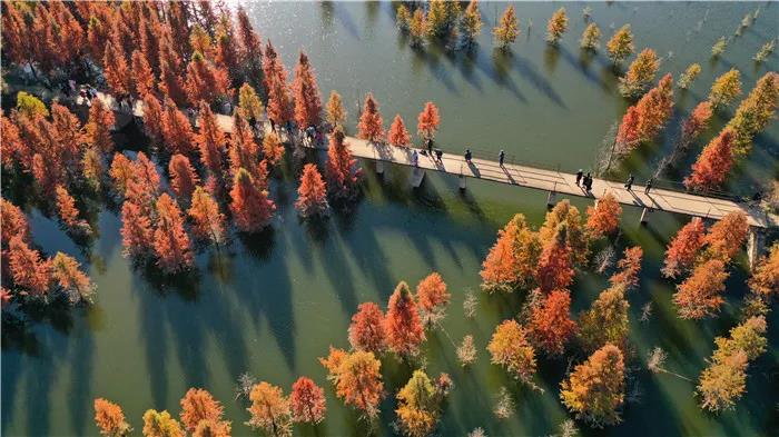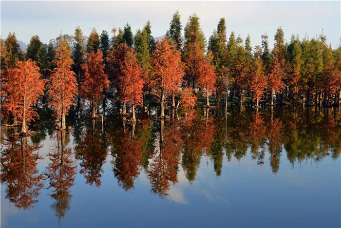 滇池邊的水杉就逐漸呈現溫暖的赭紅色
