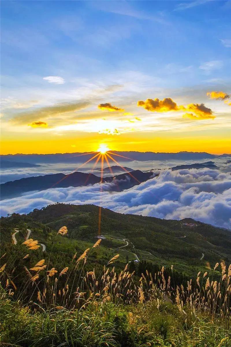 置身大蘆山的茫茫云海,如漫步云端,晨觀朝陽初升,暮賞落日紅霞,似有一只巧手執彩筆為遠處山嵐勾勒出一幅絕美圖景。云海漫涌,群山萬壑隱于云層之下,只有遠處的山巔隱約可見,如同天際的孤島,在白浪里沉浮翻騰。
