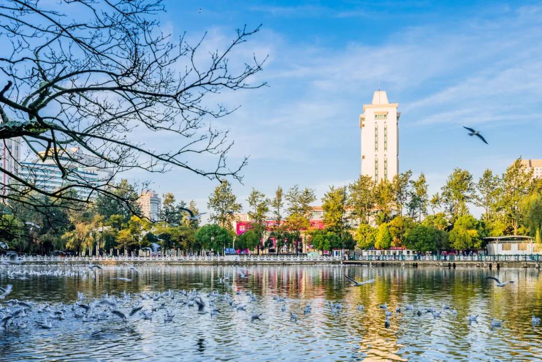 到了秋冬天寒時,翠湖公園內最吸引人的景致便是紅嘴鷗。到那時候,成千上萬的紅嘴鷗不遠萬里從西伯利亞飛至昆明過冬。