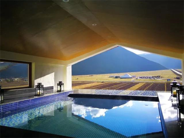 酒店位于石卡雪山腳下納帕海草原旁,擁有雪山和草原景觀一體的天際溫泉池,并對客人免費開放。置身池中,可觀浩瀚星空和綿綿雪山,盡享悠閑與快樂。