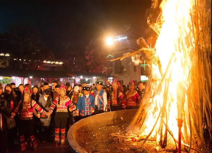 待夜幕降臨,華燈初上,彝人古鎮(zhèn)里人山人海,祭火大典、篝火晚會、彝族打跳輪番上演,整個古鎮(zhèn)熱鬧非凡。