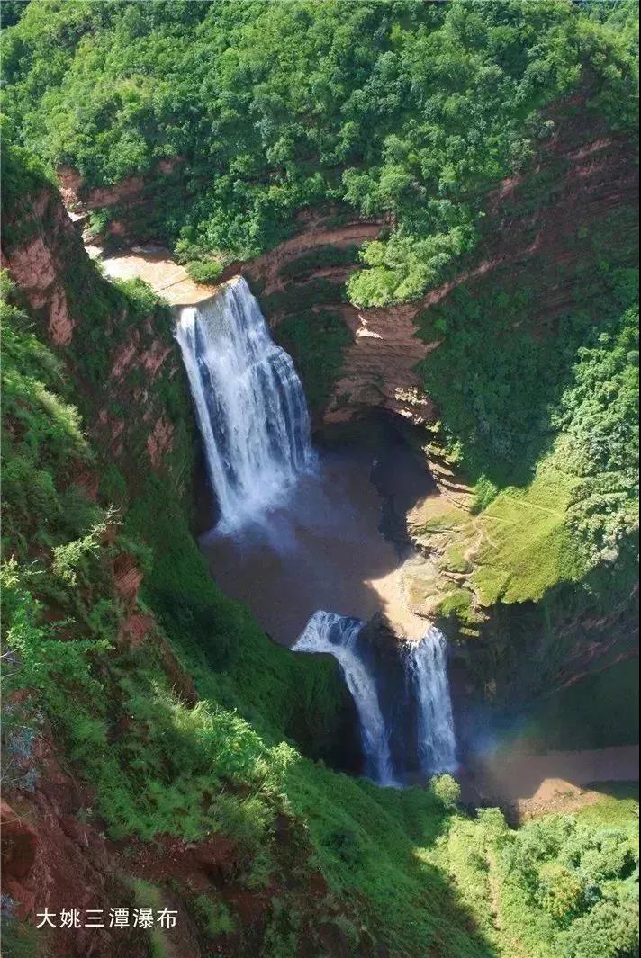 三潭瀑布乃古代大姚八景之一,因地質(zhì)運動,金沙江支流蜻蛉河谷形成斷層,斷面有三階,河水沿斷面飛流而下,勢若千鈞,形成三個深潭,“三潭”由此得名。