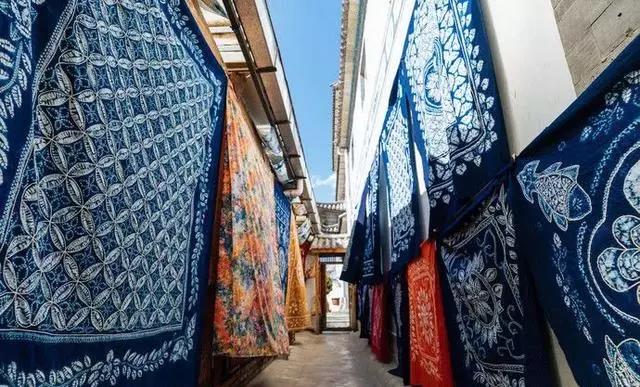 喜洲的巷子多是窄而長的,巷道兩旁的長墻,有的陳舊斑駁,有的掛著斑斕的扎染布,游人可以隨時欣賞白族傳統(tǒng)手工藝——扎染的奇妙。