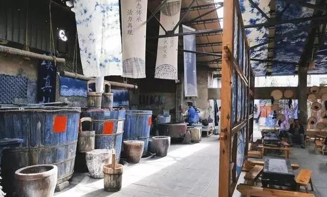質(zhì)樸的白布經(jīng)過侵染,融合板藍根神秘的藍色,染上各式各樣具有深意的花紋,最終做成桌布、窗簾、圍巾、披肩、衣服……若非親眼見到,很難形容扎染的制作過程。