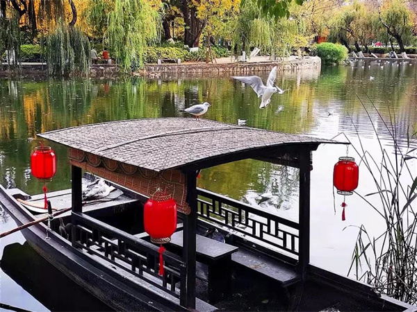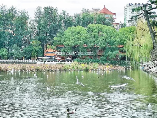在明代以前,翠湖曾經是滇池的一個港灣,清初以后成為游覽圣地,自此游人絡繹不絕,漸漸發展成了一個公園,作為昆明歷史的參與者和見證者。冬季一到,翠湖每每迎來成千上萬的紅嘴鷗,便更加不乏來客了。國內國外,遠近八方,但凡來到昆明,這鑲嵌于昆明城中的一塊“綠寶石”都是必覽之景。