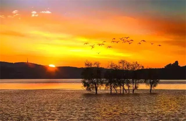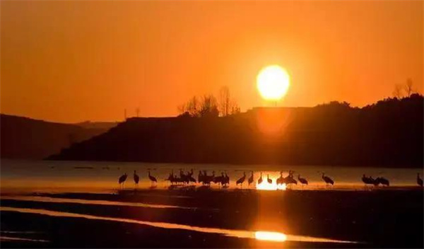 秋天有仙鶴滿載思念而歸的光影畫卷